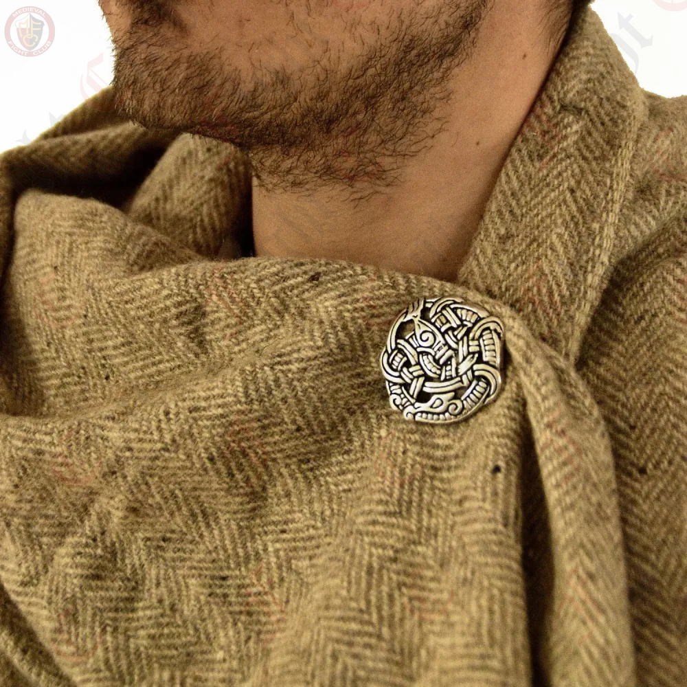 Disc brooch in the Urnes style of the late Viking Age. Here you can buy an expressive Viking jewellery with the depiction of a serpent, inspired by the so-called Urnes style, which was common in Scandinavia in the late Viking Age. On the back of the disc brooch is a sturdy pin. This makes the disc brooch perfect for stronger fabrics, such as a woollen cape. Disc brooches were usually worn in the middle of a woman's garment during the Viking Age, but they were also used to close a cloak.