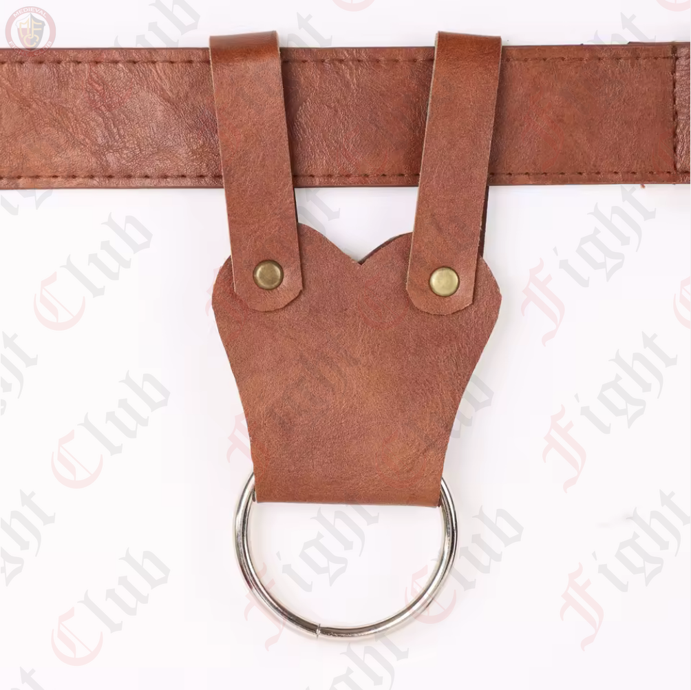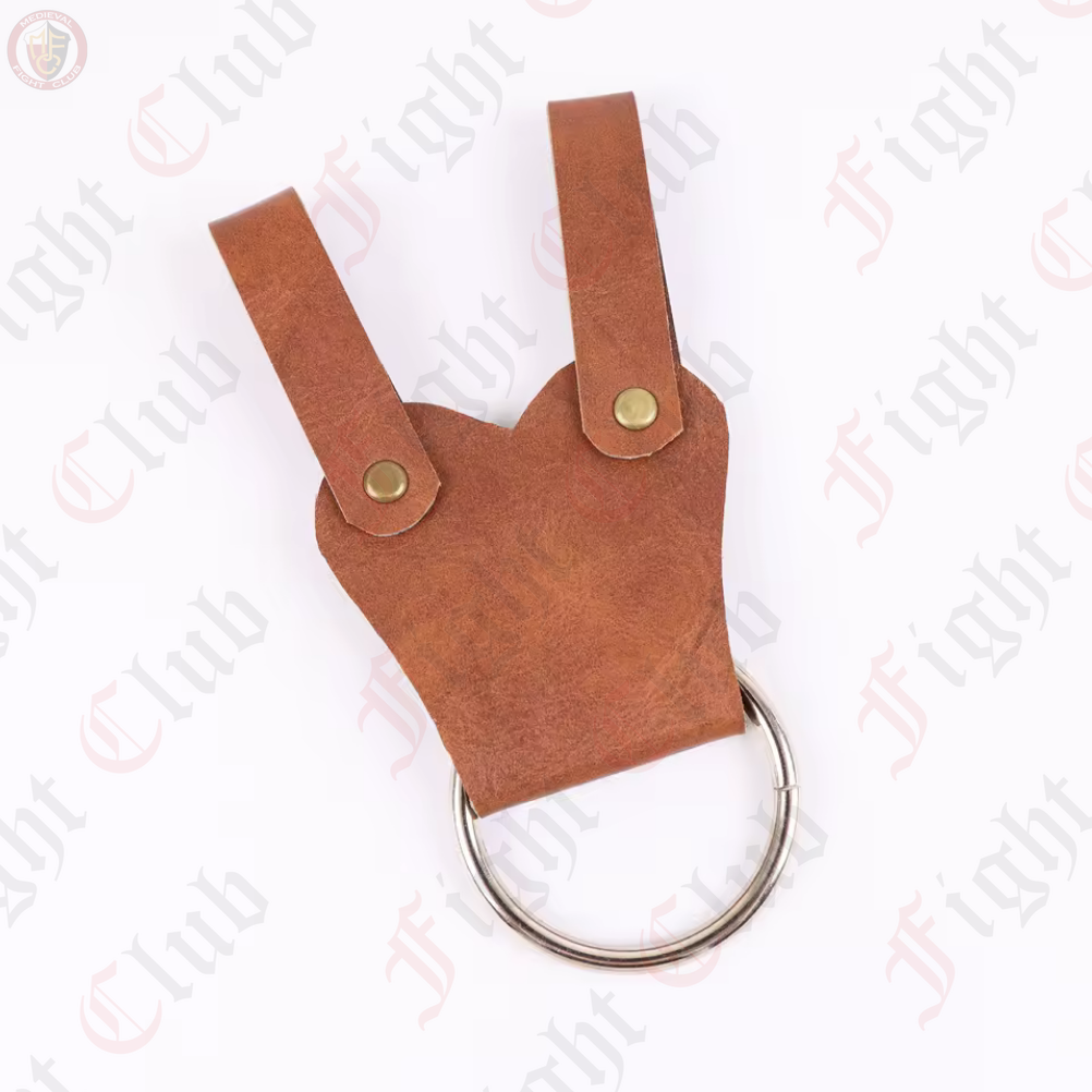 A weapon is only worth anything if you can hang it from your hip, and that's exactly what this leather ring frog lets you do! Simply thread it through your belt, slide it next to your hip, and slip your weapon down the ring. The ring will catch the crossguard of a sword or the beard of an axe, letting you holster most weapons with ease.