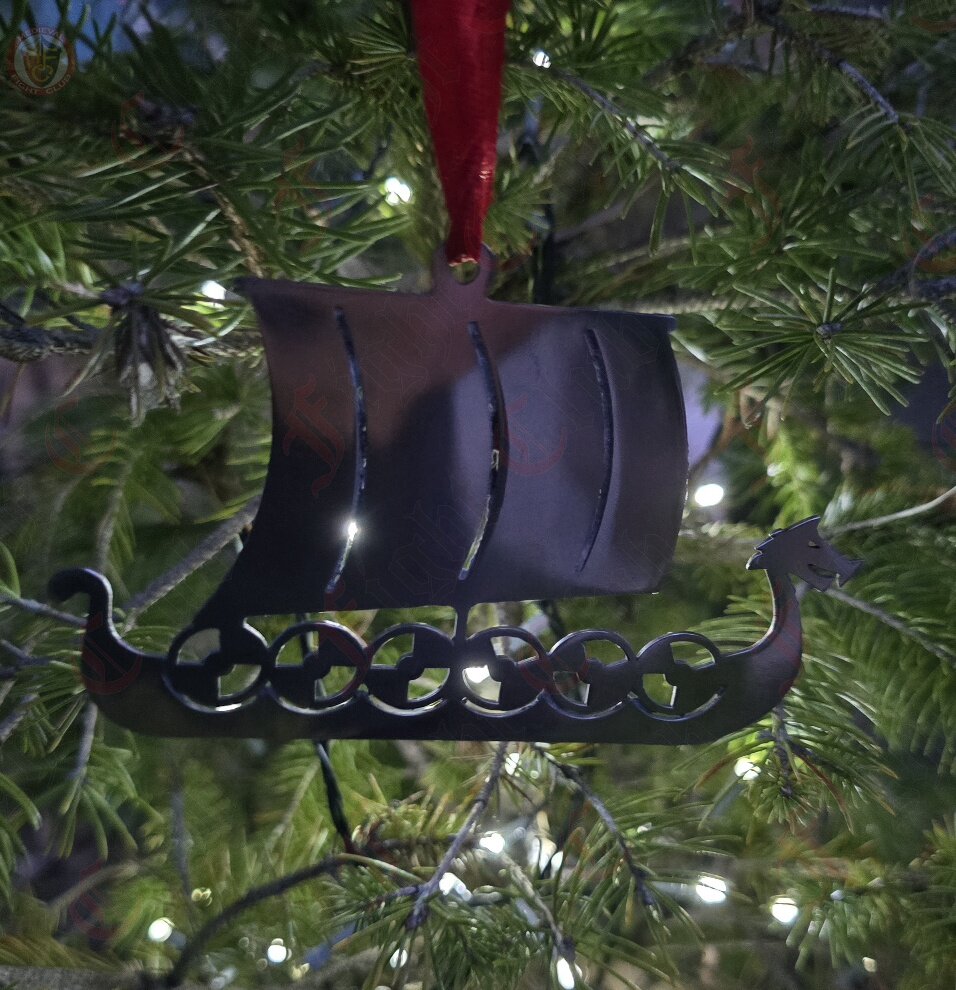 Capture the spirit of the North with this striking Steel Viking Longship Ornament—a perfect accent for your Christmas tree, Yule decorations, or as a year-round window charm. Crafted from durable steel and shaped in the classic silhouette of a Viking drakkar, it reflects the bold lines and seafaring legacy of the Norse world.