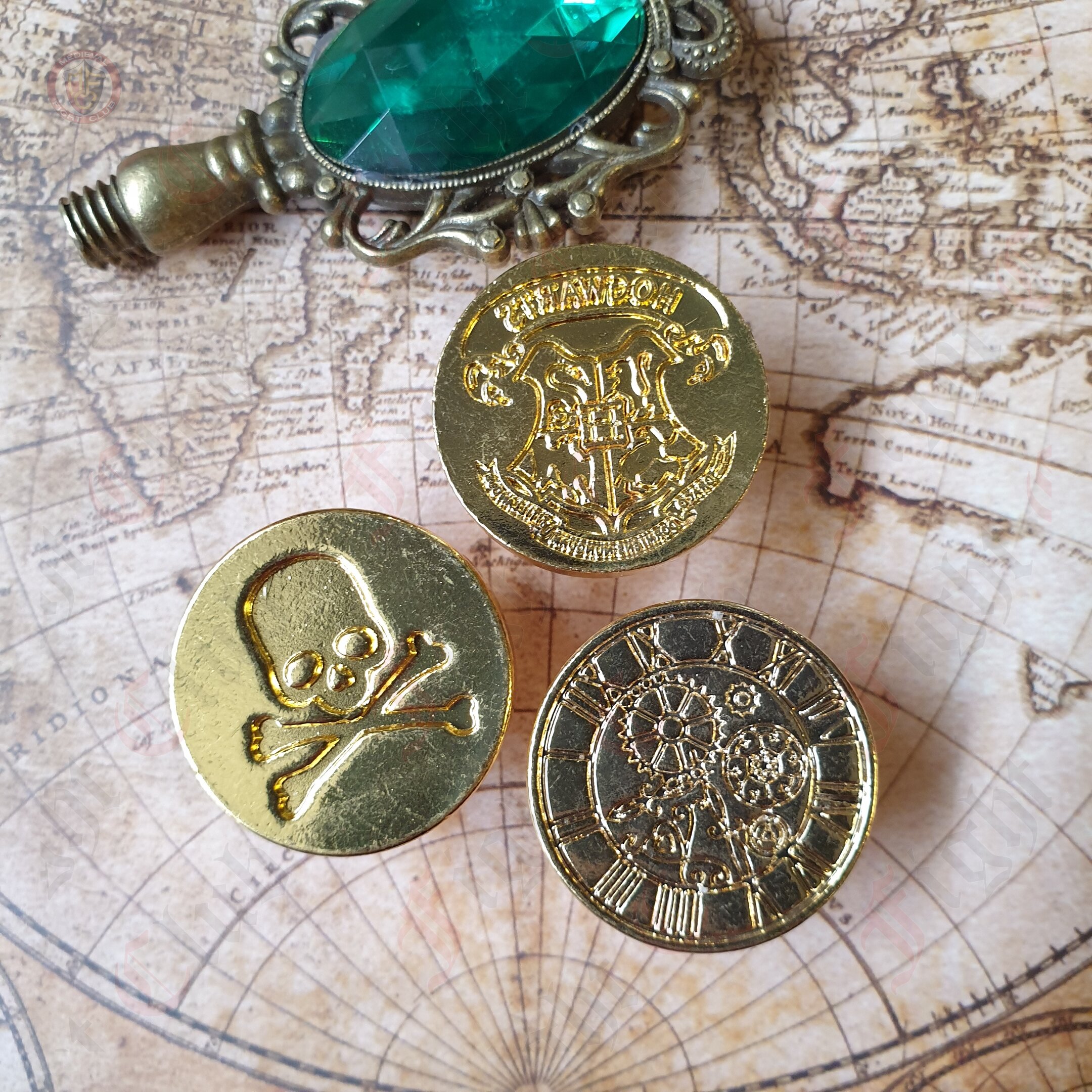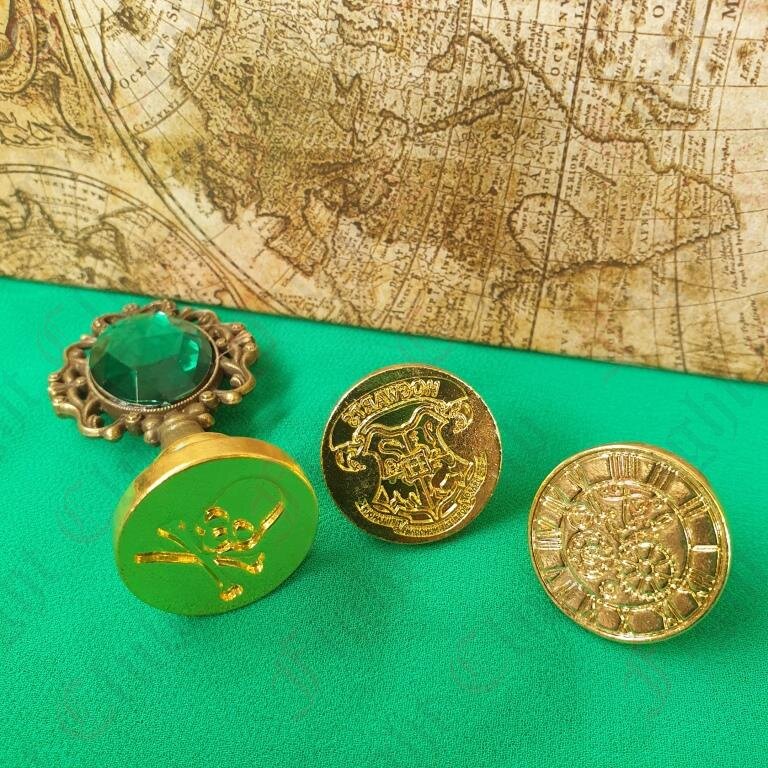 3 x Wax Seal Stamps - Harry Potter Hogwarts Crest, Clockwork Steam Punk, Pirate Skull and Crossbones