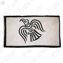 This double sided white raven banner is made of high quality polyester. It is colourfast and durable. It has eyelets for hanging.