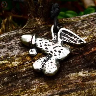 This pendant with the motif of a winged phallus with bells was found in the Netherlands. The phallus amulet was made of pewter at the time and dates from the period between 1375 and 1425. The winged phallus pendant carries a small bell on a ribbon. It is the most widespread "indecent" pewter badge of this kind in the late Middle Ages. Especially in the Netherlands and in France, pendants like this phallus amulet were ubiquitous in the Middle Ages, they appear in numerous finds. Phallus representations were often sewn directly onto clothing.