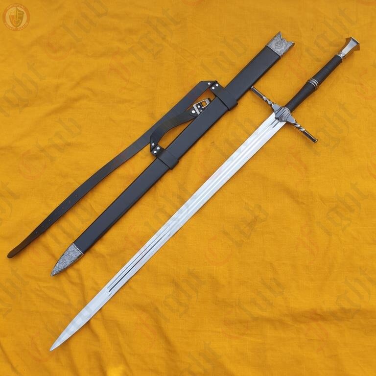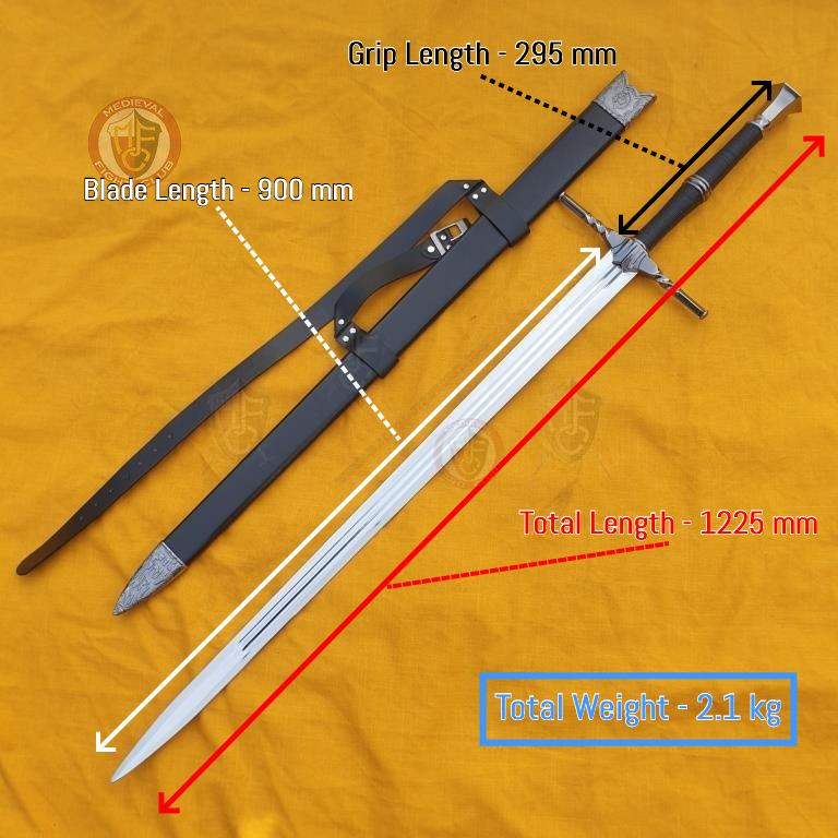The famed Witcher, Geralt of Rivia, also known commonly as "the White Wolf", as well as by many other names, hailed from The Wolf School. This replica is of his steel sword, for fighting non-magical creatures.