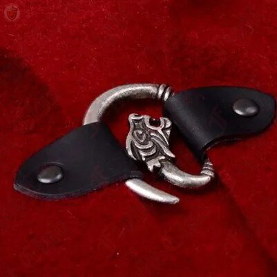 The expressive hook fastener with wolf's head can be used very well as a belt buckle for 3 cm wide belts, but also complements medieval garments just as well as a garment clasp.