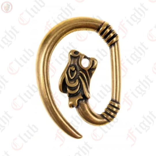 A decorative hook fastener in the shape of a wolf's head.