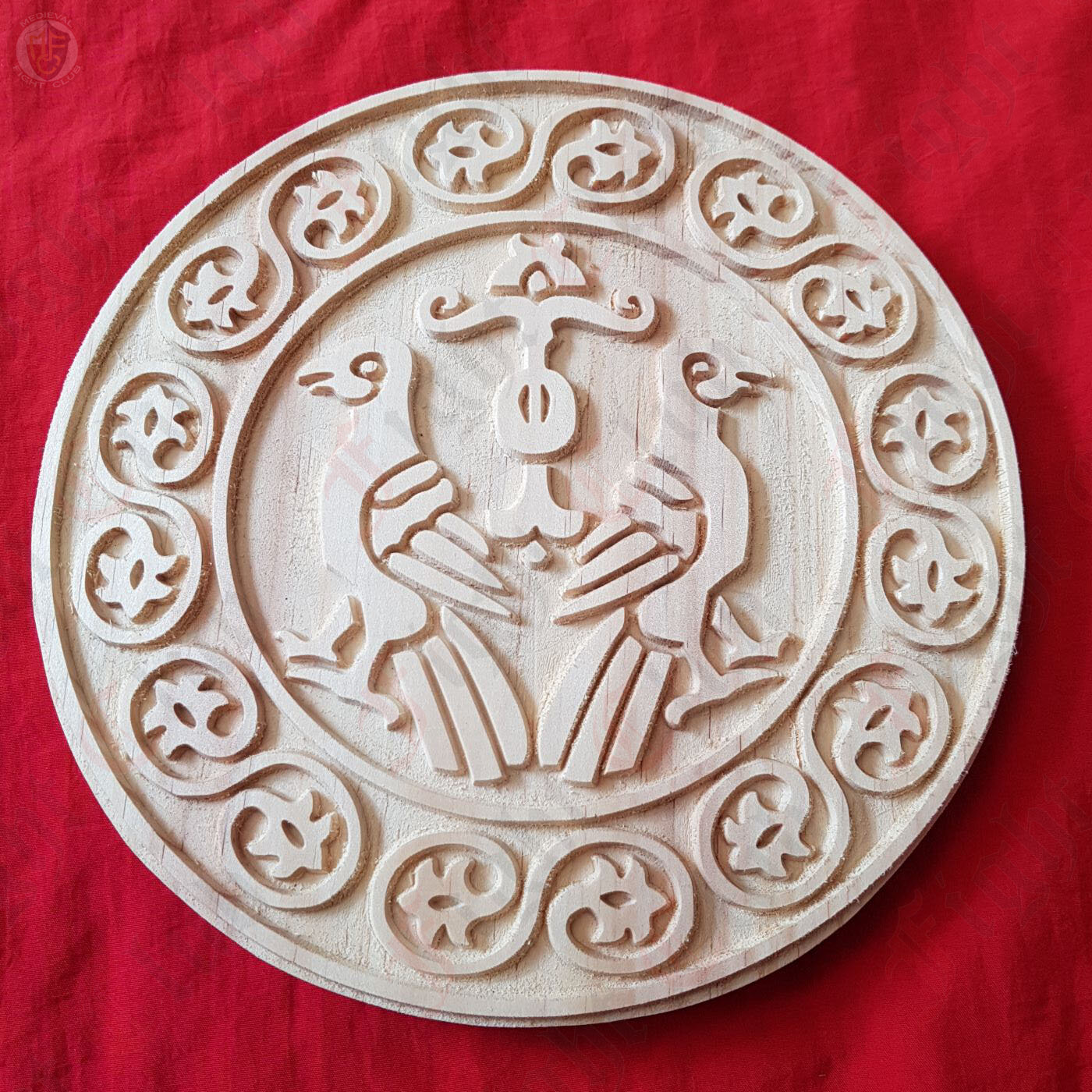 This wooden printing block is designed to be an anachronistic version of an 10th~12th century CE examples of Rus block printing, the geometric roundel shape mirrors silk brocade of the same era and may have represent a suitable local alternative to imported silks. This printing block is the perfect choice for your next sewing project and looks fantastic stamped in rows to cover an entire kaftan, cloak, tunic or dress.