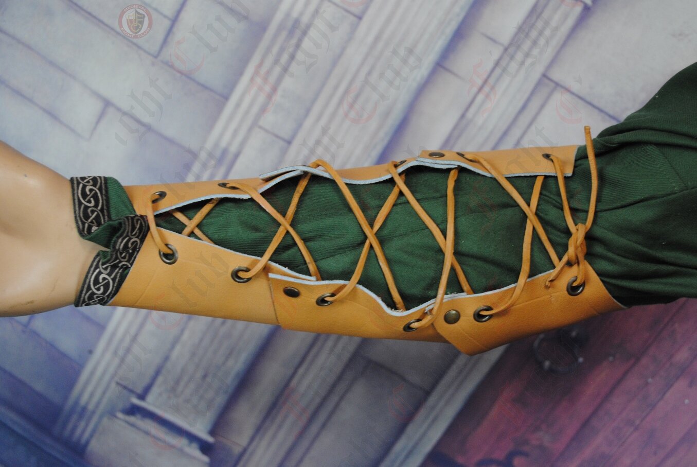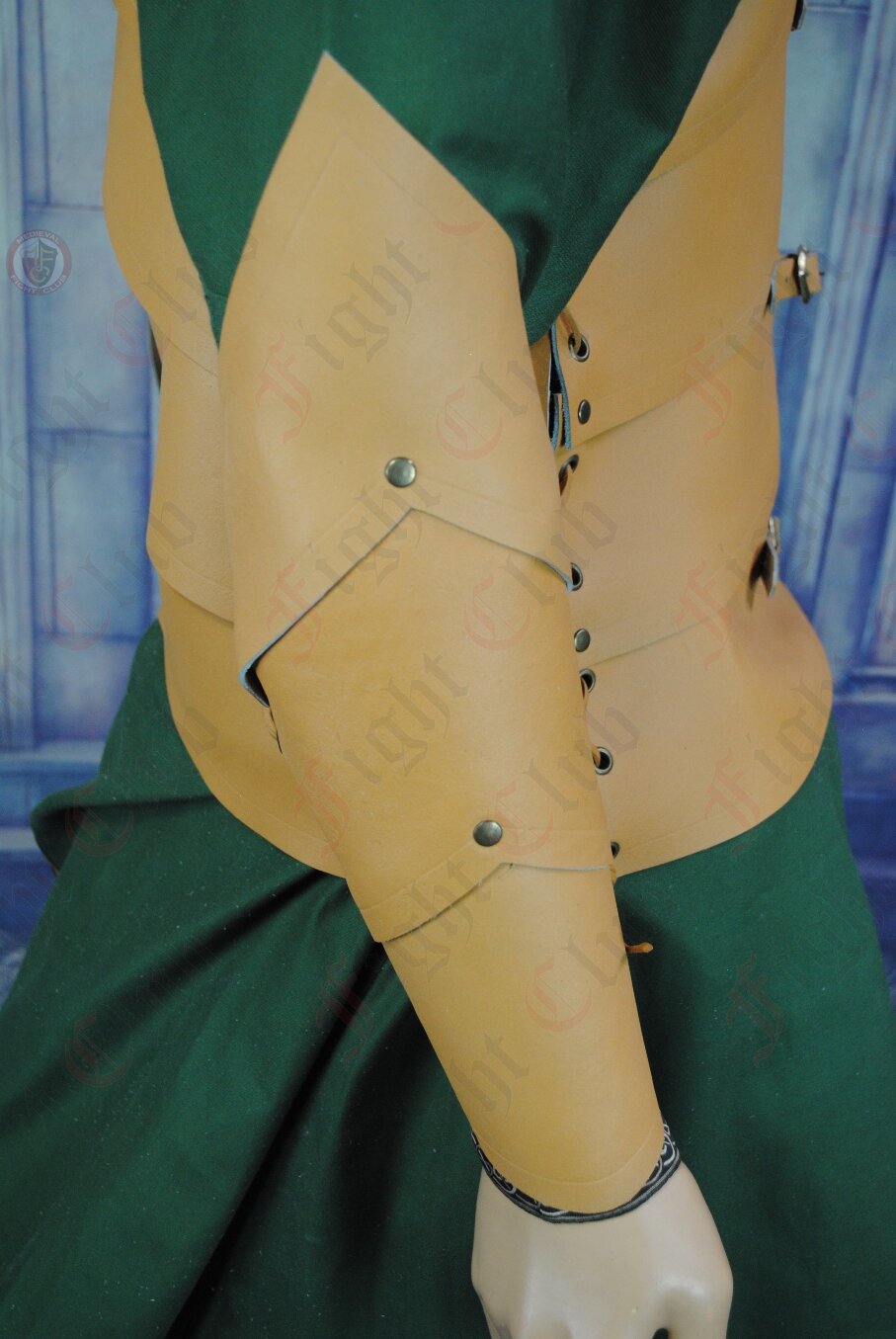 Likewise the vanbrae (armguards) are 3 pieces of leather - shaped, riveted and laced.