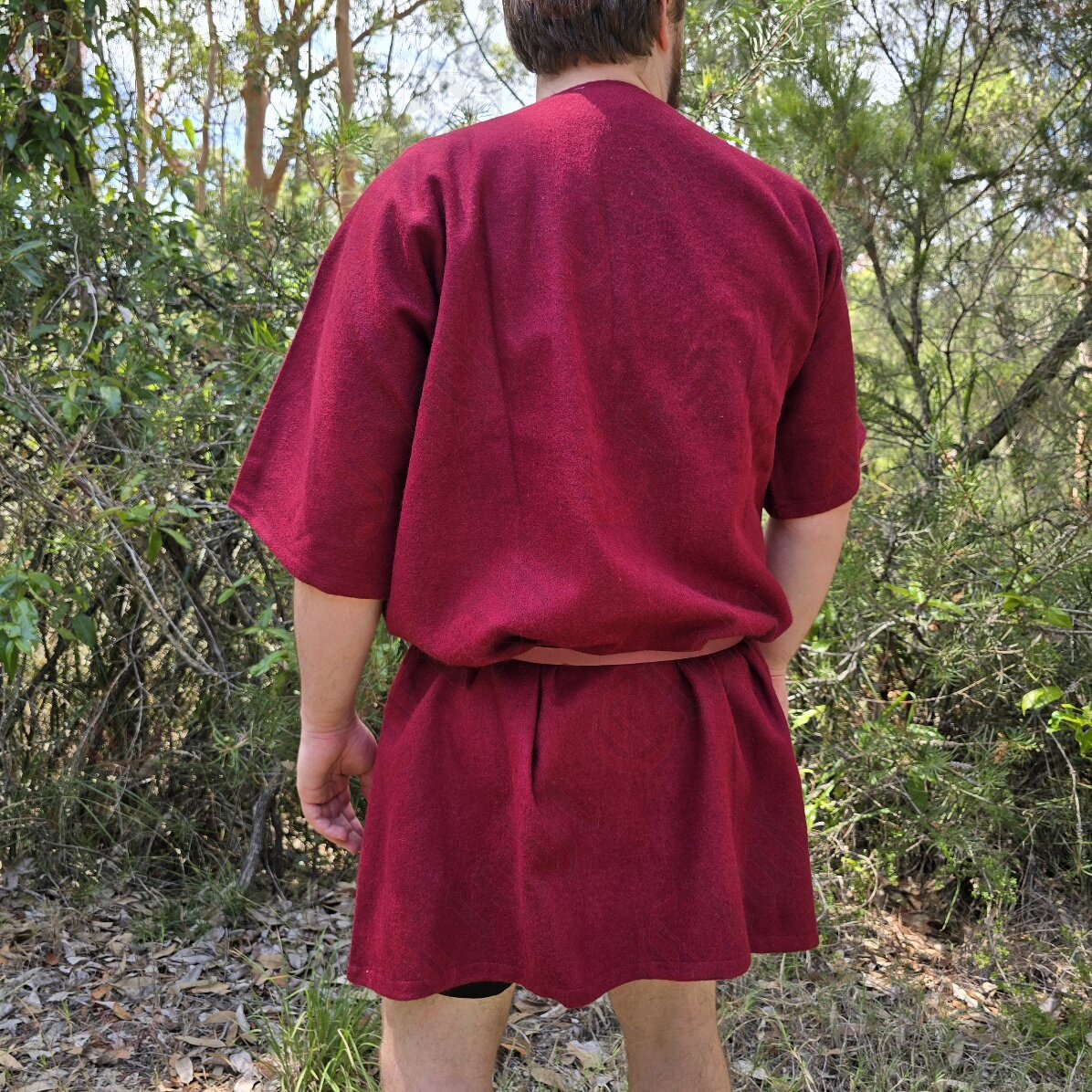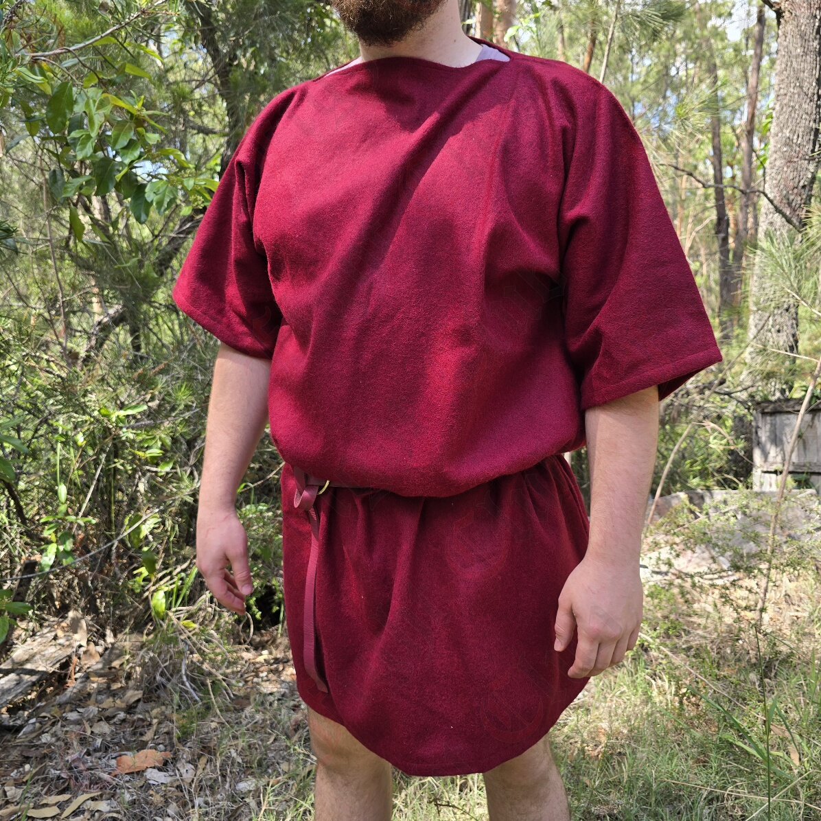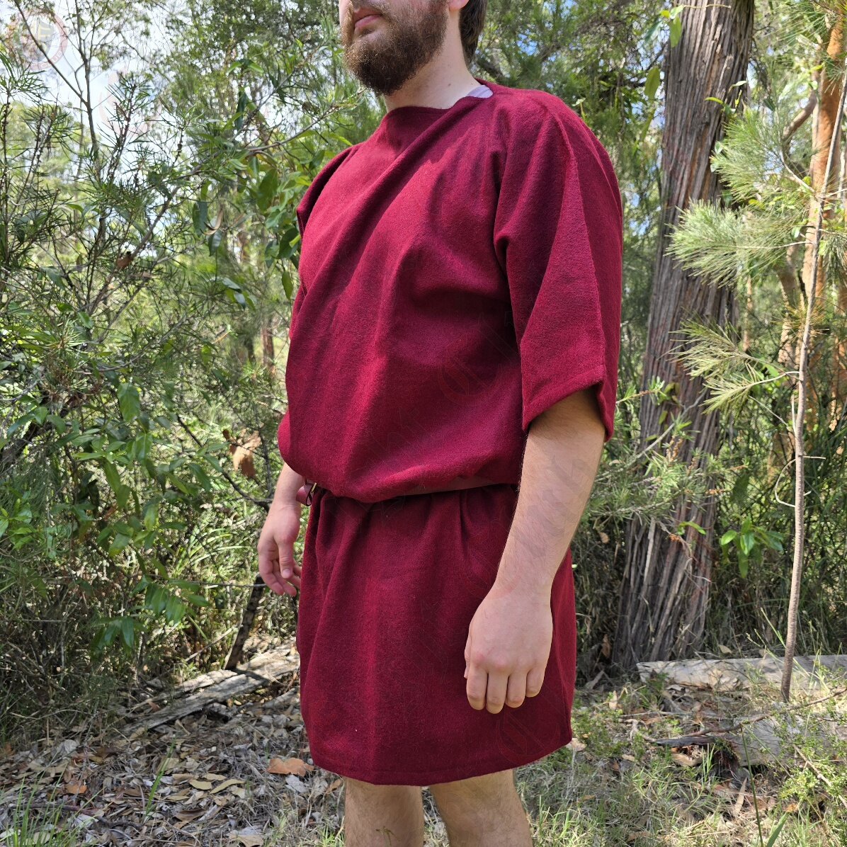 This thigh-length tunic is made from 100% wool, offering an authentic historical feel. Its rich burgundy colour adds a striking touch, suitable for characters of status, warriors, craftspeople, or anyone seeking a bold medieval-inspired look. Cut in a traditional, loose-fitting style, the tunic provides comfort and ease of movement during battle scenarios, camp life, or long days at events. The 3/4-length sleeves are ideal for active roles or layering beneath armour and other garments.