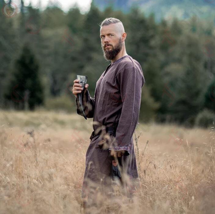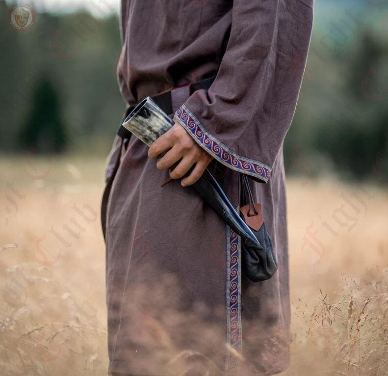 Indulge in the comfort of this medieval tunic, expertly crafted from cotton. Its knee-length cut and strategically placed side slits provide exceptional freedom of movement, making it the ideal choice for LARP events, medieval markets, or your upcoming re-enactment adventure.