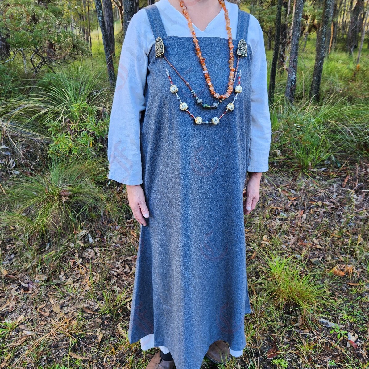 Step into the world of Viking tradition with our simple yet elegant Grey Woollen Hangaroc Apron Dress – a faithful replica of the attire worn by Viking women. Crafted with meticulous attention to detail, this dress exudes authenticity and functionality, just like its historical counterparts.